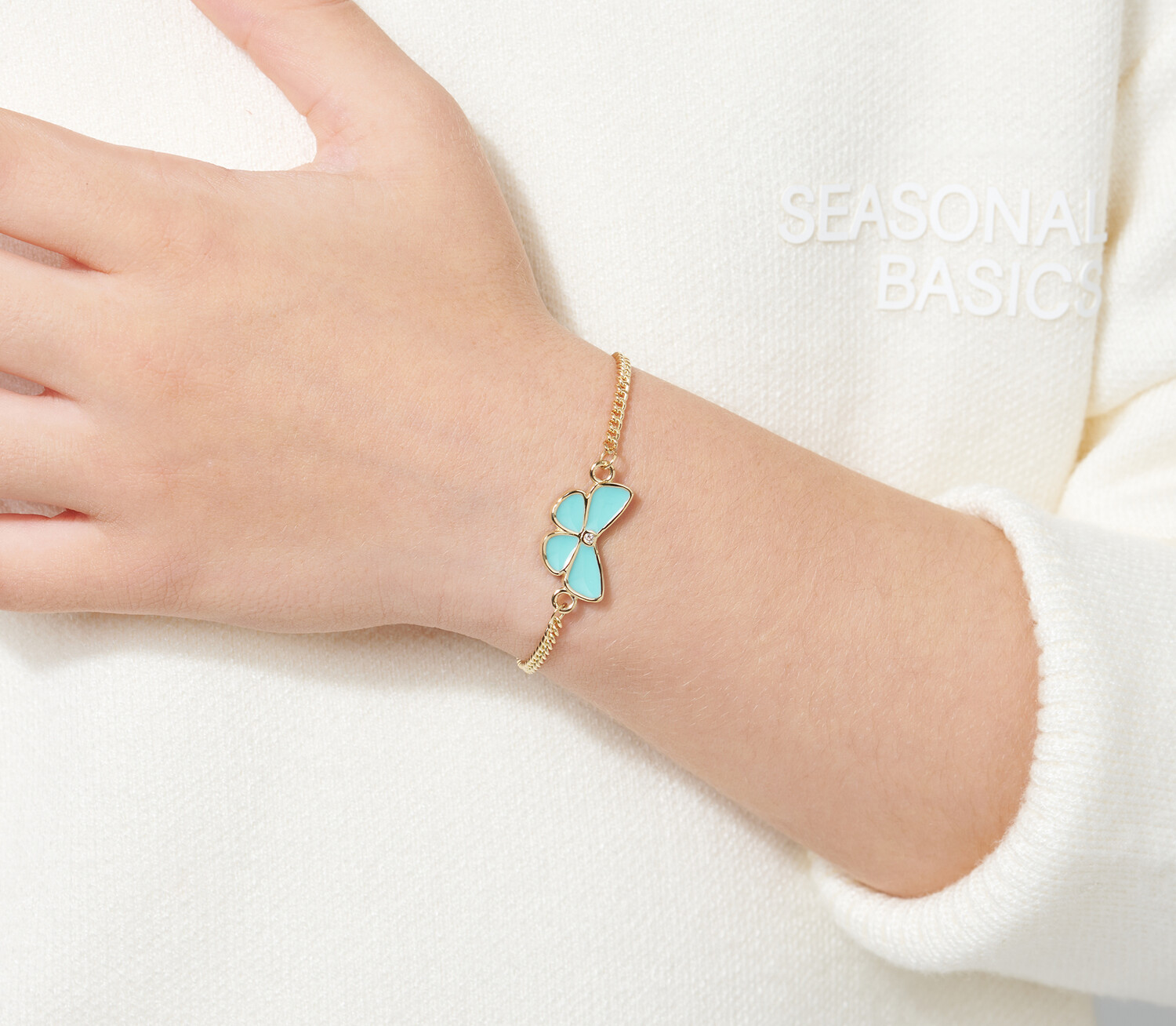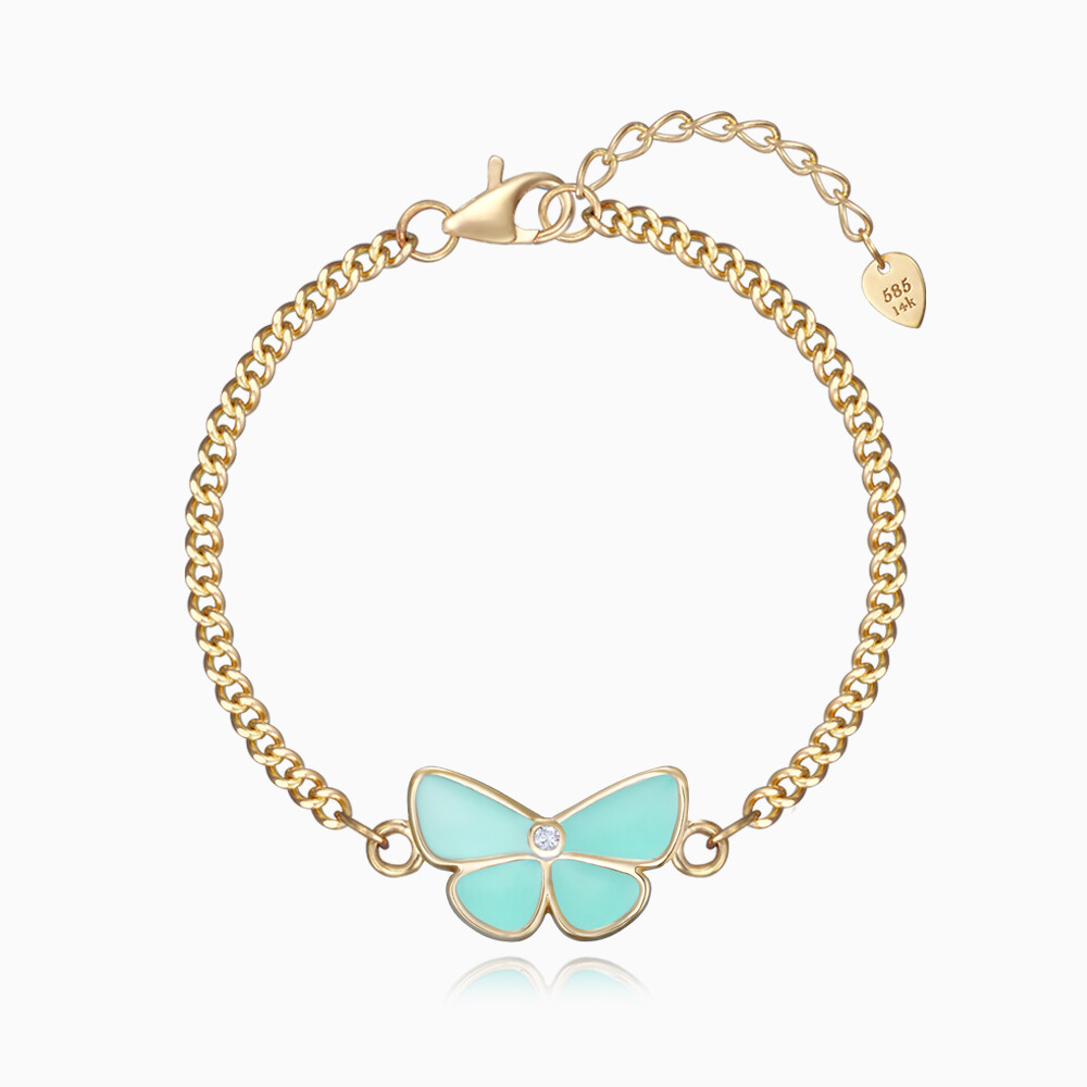 버터플라이 쁘띠체인 골드 팔찌 (민트)