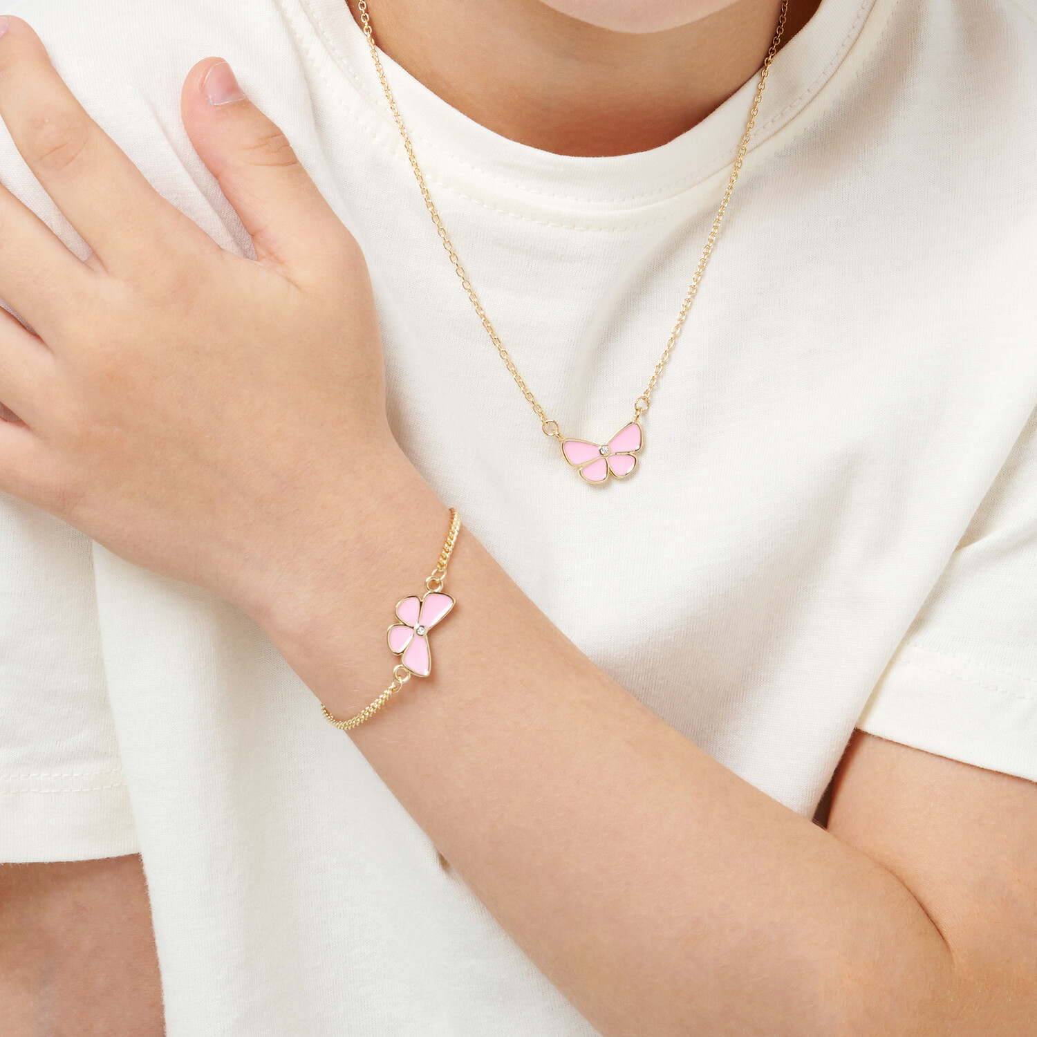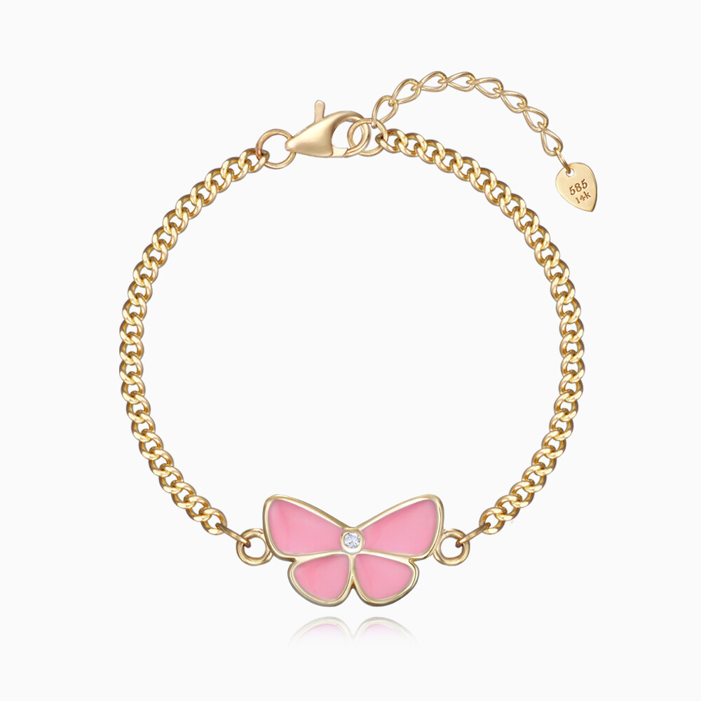 버터플라이 쁘띠체인 골드 팔찌 (핑크)
